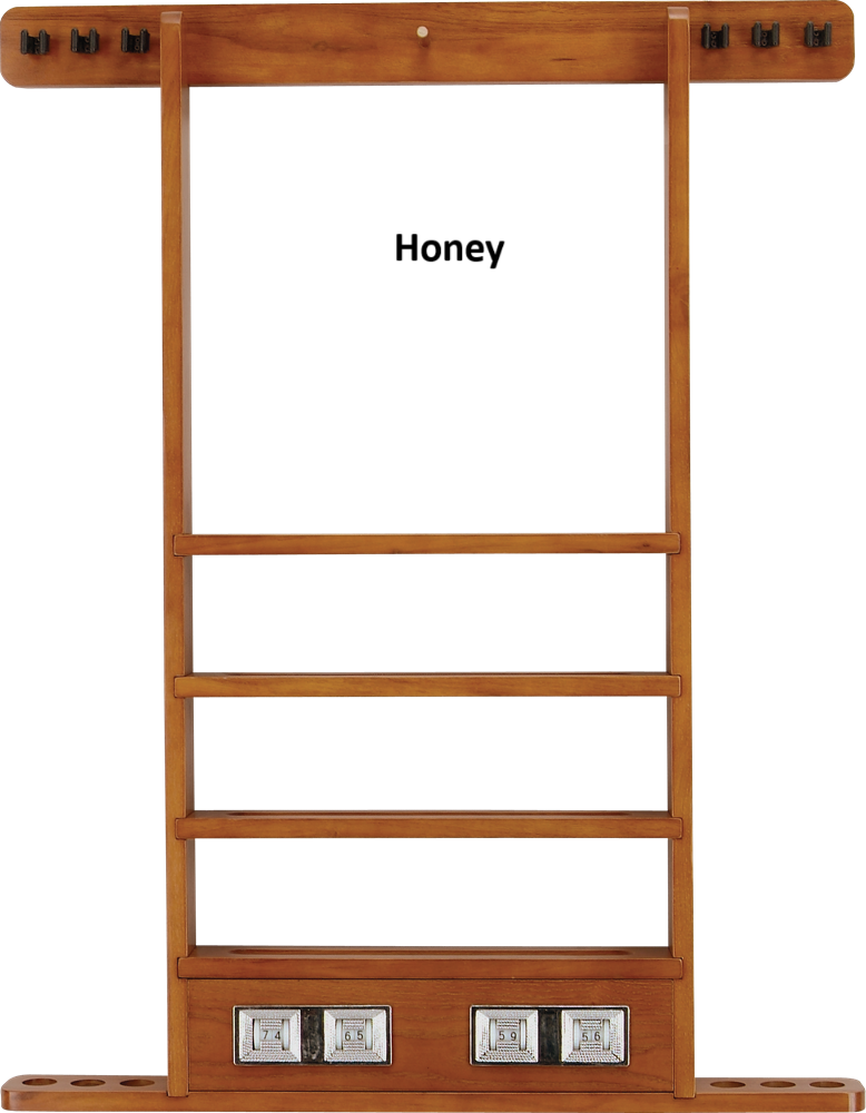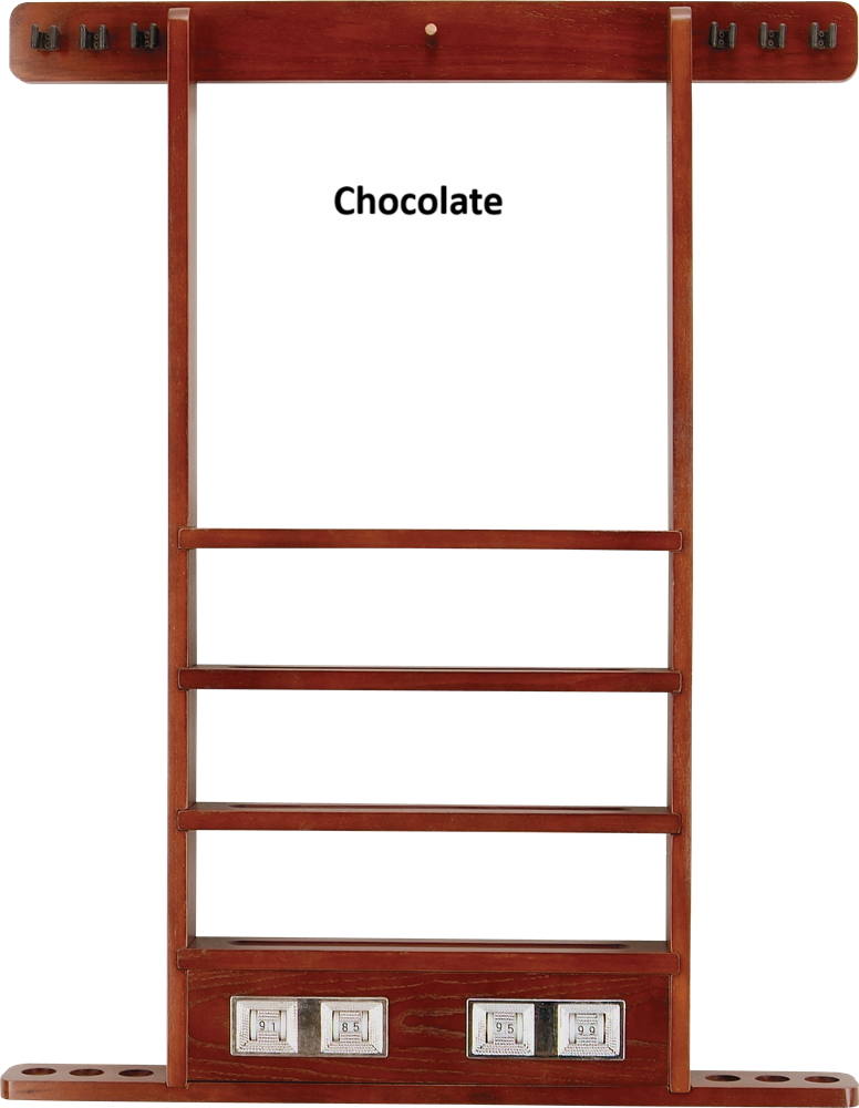 The WRSC Deluxe 6 Cue Wall Rack with Score Counter is the ultimate wall-mounted solution for organizing your billiard room. Designed to hold 6 pool cues, a full set of balls, and equipped with built-in score counters and cue hooks, this rack keeps your game space neat, functional, and stylish. Available in four finishes — chocolate, honey, midnight, and wine — it combines elegance with practicality.