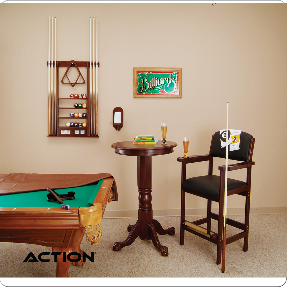 Corner stand holds 10 cues, ball storage, and glass holders Available in Chocolate, Midnight, Wine or Honey stains Dimensions: 17.5(d) x 27.5(h) x 14.25(w) Some assembly required Includes hardware and allen wrenchDoes NOT come with the ball racks ..