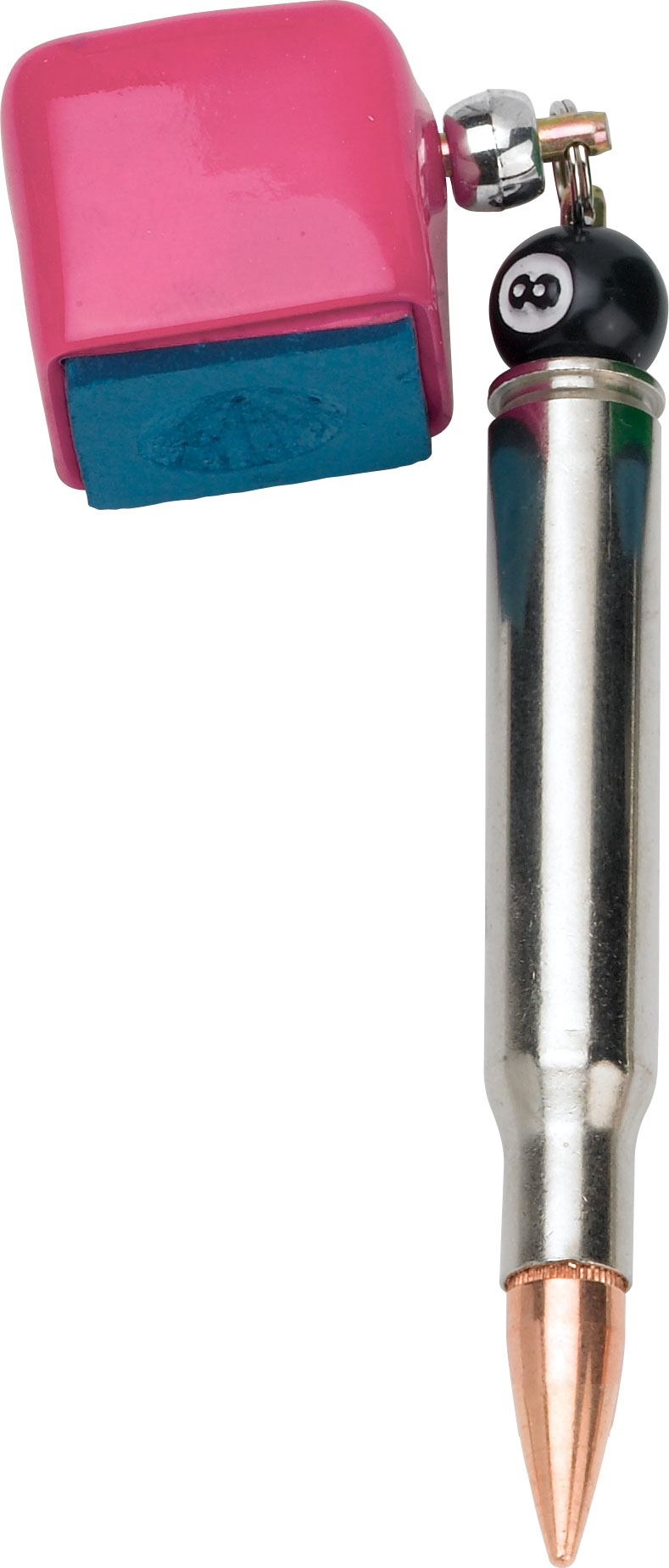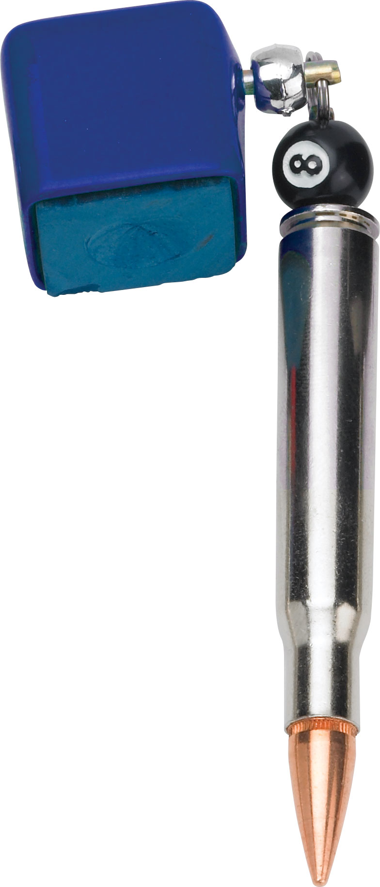 The Silver Bullet Pocket Chalker and Scuffer (QCSBCS) is a unique, multi-functional accessory designed for players who appreciate the shooting sports as much as the game of pool. Crafted using a genuine 30/06 rifle bullet shell (completely inert and safe), this chalker serves as a weighted anchor that slides into your pocket, keeping your chalk suspended and ready for use between every shot.